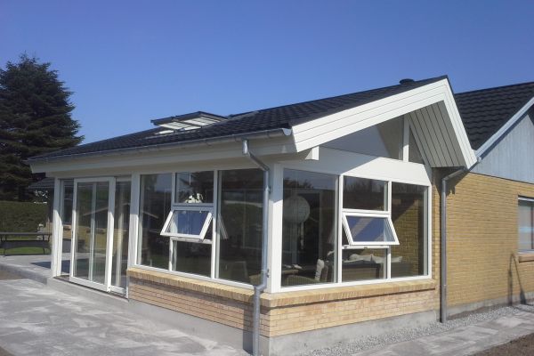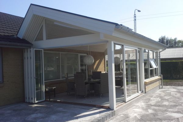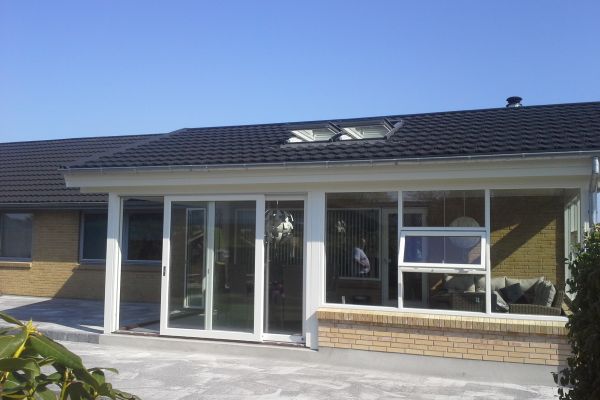 Tilbygning af vinterhave i Tylstrup med foldevæg,skydedør.2 Velux integra vinduer.